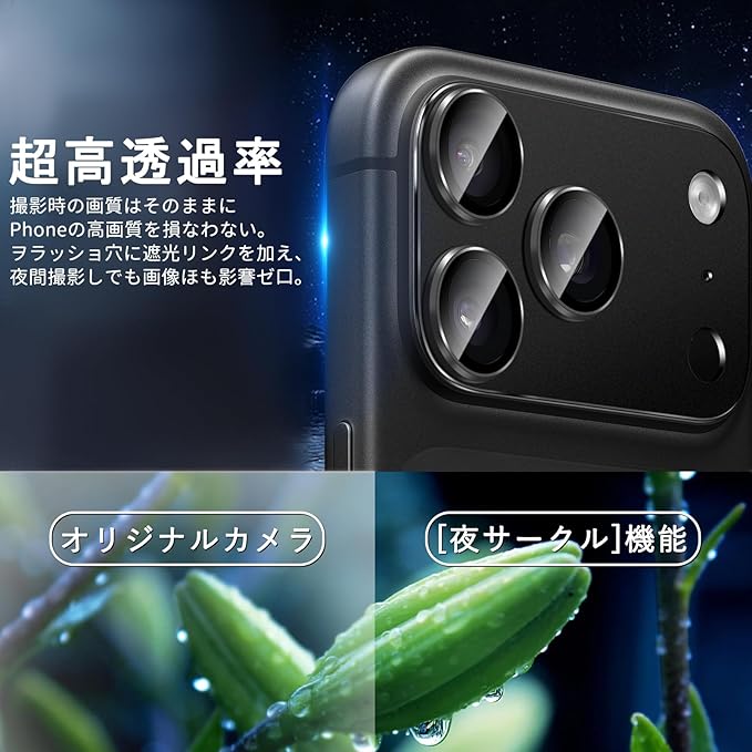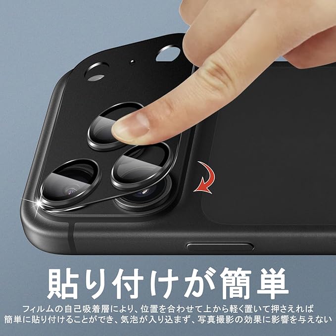 【疎水性・撥油性抜群・耐衝撃】フィルム表面はハードコート加工、オイルコート加工、平滑接触加工などの各種特殊加工組み合わせを採用し、油分、ほこり、指紋に対する抵抗力が非常に強い。9H硬度のカメラフィルムは傷や擦れに強い、ナイフや鍵などの尖ったものでも簡単には傷がつきません。カメラレンズを日常の衝撃からしっかりと保護します。