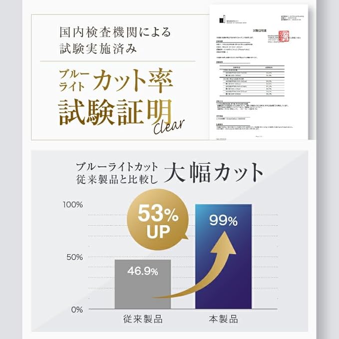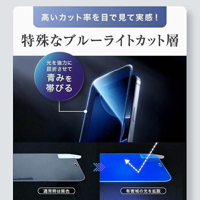 99% ブルーライトカット / 全面保護 / 高透過率でクリアな画面