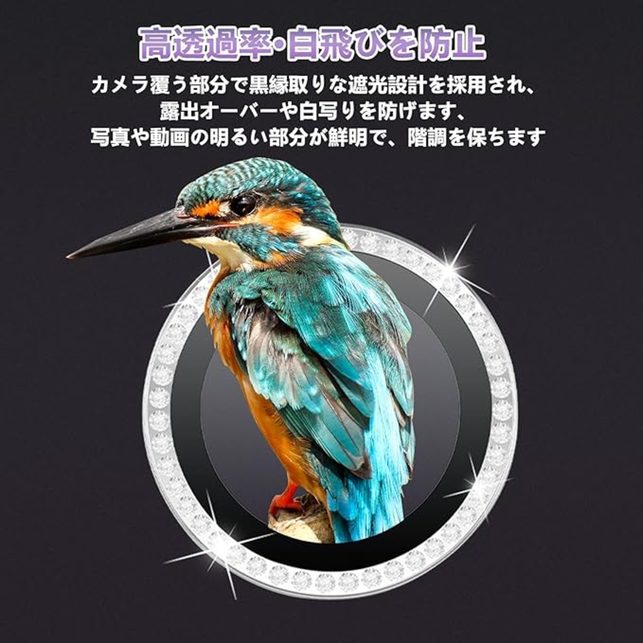 【ファッション飾りフィルム】本製品はアルミニウム合金+強化ガラス製、キラキララインストーンを使用したユニークなデザインで、スマートフォンのカメラレンズを保護しながら、太陽や、街頭、車のライトに反射して魅力的な光を放ちます。更に、強韧な3Mテープを使用したことで、レンズにしっかりと貼り付け、剝落の問題を徹底的に解消します