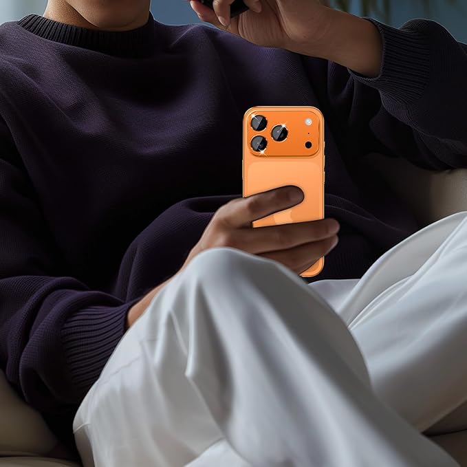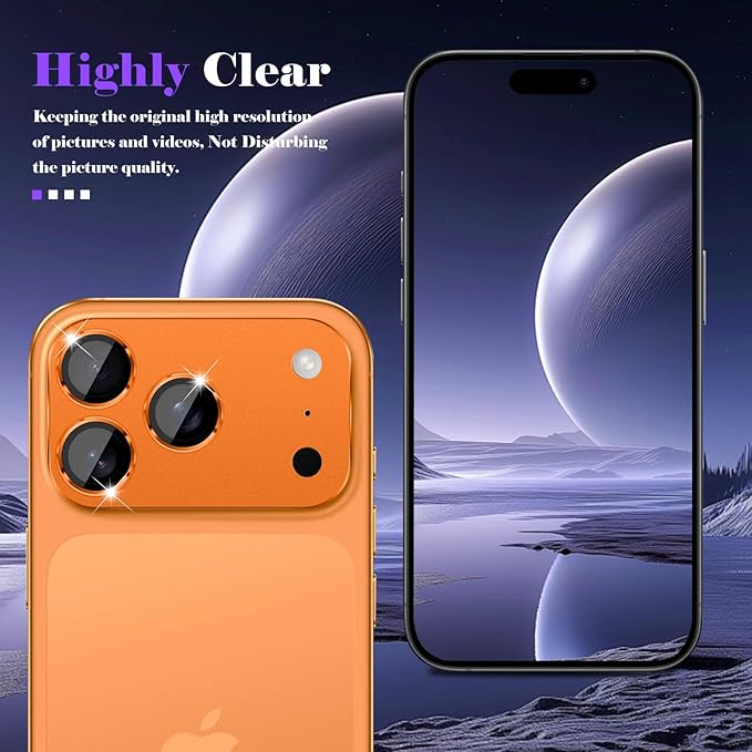 カメラカバー コンパチブル iPhone 17 Pro カメラフィルム アルミ合金一体製 カメラ保護 9H強化ガラス 全面保護 耐衝撃 高透過率 黒縁取り 露出オーバー防止【1枚】貼り付け簡単 カメラフィルム アイフォン17 Pro 対応 - オレンジ | KAZESHOP