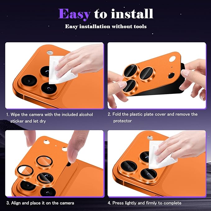 【対応機種・貼付け超簡単】 iPhone 17 Pro 専用カメラレンズプロテクター。フィルム接着面にはナノ静電吸着技術を処理され、位置を合わせて置くだけで簡単に貼り付けます。誰でも気泡なく、綺麗に貼り付けます。