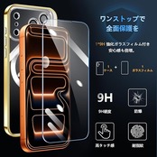 iPhone 17 Pro 専用 ケース カバー クリア 1枚ガラスフィルム付き TPU MagSafe対応 ワイヤレス充電対応 マグネット搭載 耐衝撃 アイフォン17pro カバー 自動吸着 高透過率 全面保護 指紋防止(ゴールド) | KAZESHOP