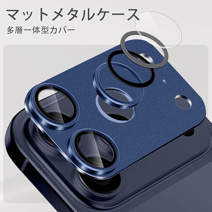 カメラフィルム iPhone 17 Pro専用 カメラ保護 9H強化ガラス アルミ合金 レンズカバー 超高透過率 アイフォン17プロ対応 一体型 耐衝撃 キズ防止 露出オーバー防止 気泡ゼロ カメラカバープロテクタ ブルー | KAZESHOP