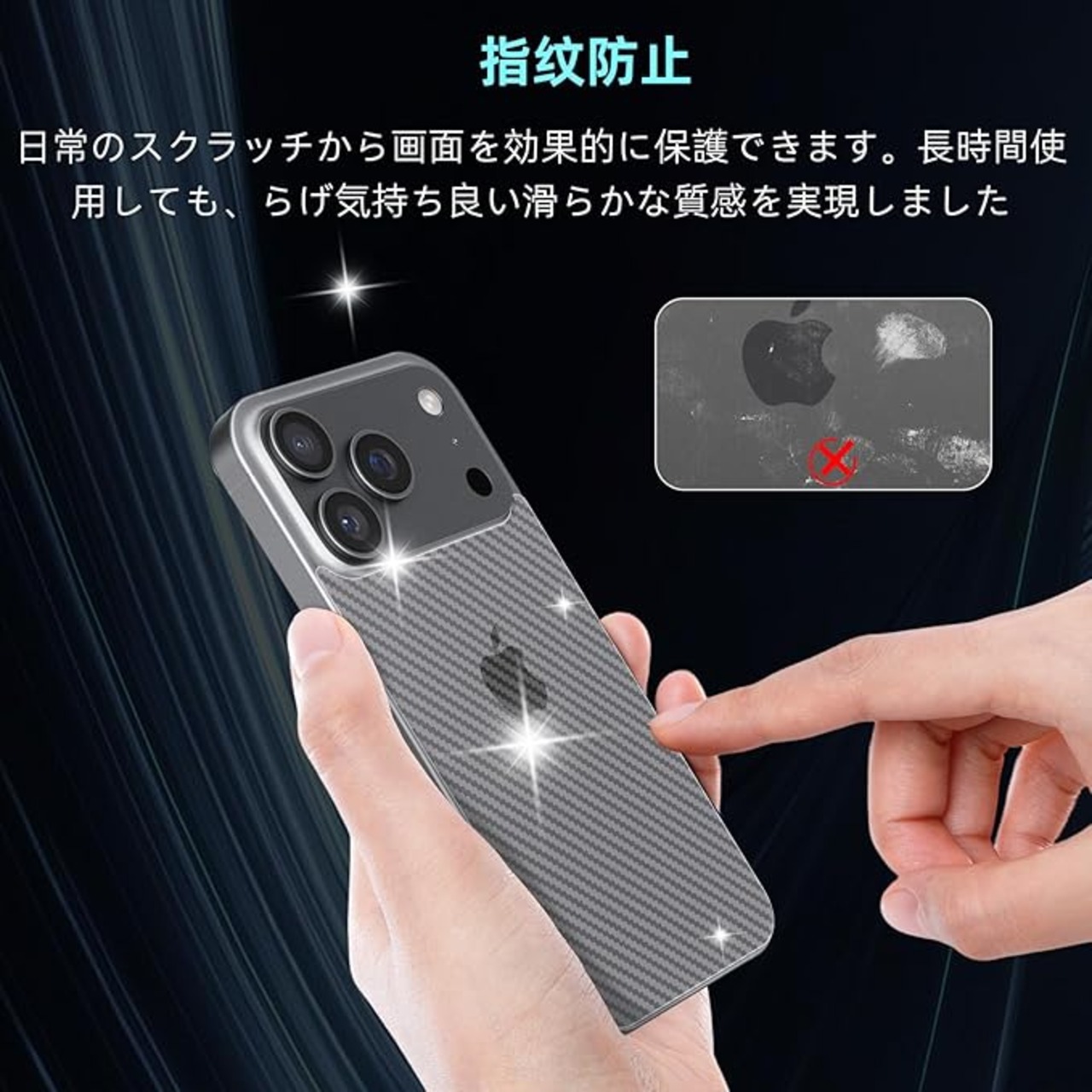 【高品質の素材】業界最高レベルの炭素繊維に素材を採用し、ハードコーティング技術を加え、フィルム表面のハードコート層によりスマートフォン本体のフラットな面をきれいな状態に保ちま、背面の清潔を保つことができます、上品でエレガントな印象を与えます