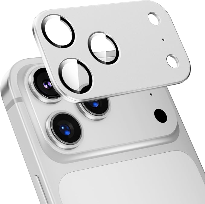カメラカバー iPhone 17 Pro用 カメラ保護 いPhone 17 Pro 対応 レンズカバー 全面保護 9H強化ガラス アルミ合金 耐衝撃 キズ防止 高透過率 黒縁取り 露出オーバー防止 防滴 防塵 貼り付け簡単 自動吸着 気泡ゼロ アイフォン17 プロ レンズフィルム(シルバー) | KAZESHOP