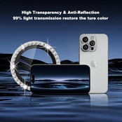 【超薄型高透過率】カメラレンズフィルム上の超薄型強化ガラスフィルムは、99.9%以上の高透過率を有し、元のカメラの鮮明度に影響を与えない前提で、画面本来の美しさを残し、フィルム表面は光学技術・ARコードを施し、高透過率を実現し、カメラレンズを保護しながら写真撮影に影響を与えず、携帯電話ケースの正常な使用を阻害しない