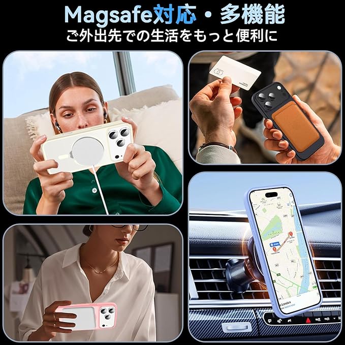 【Magsafe対応 ワイアレス充電】マグセーフの時代がやってきます。Magsafe仕様なので、すべてのMagSafeアクセサリーとワイヤレス充電器に対応しています。 お手持ちの車載ホルダー、カード入れも、ワイヤレス充電器も、バッテリーパックも、ピタッと装着できます。MagSafeアクセサリーの利便性をお楽しみください。 車載ホルダーはAndobilの製品と使用することをお勧めします。