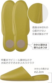 【特徴】衛生的な抗菌ビニールレザーを採用しています。甲裏もビニール素材なので、水拭きができお手入れが簡単です。糸ほつれの心配のない、圧着式製法で作られたスリッパです。【仕様】色:ネイビーサイズ:M(23~26cm)材質:表地・底面・甲裏/塩化ビニル樹脂(抗菌加工)、滑り止め部/塩化ビニル樹脂かかと高さ:約2.2cm水洗い不可 荷姿サイズ:100 300 100 mm [荷姿サイズについて]