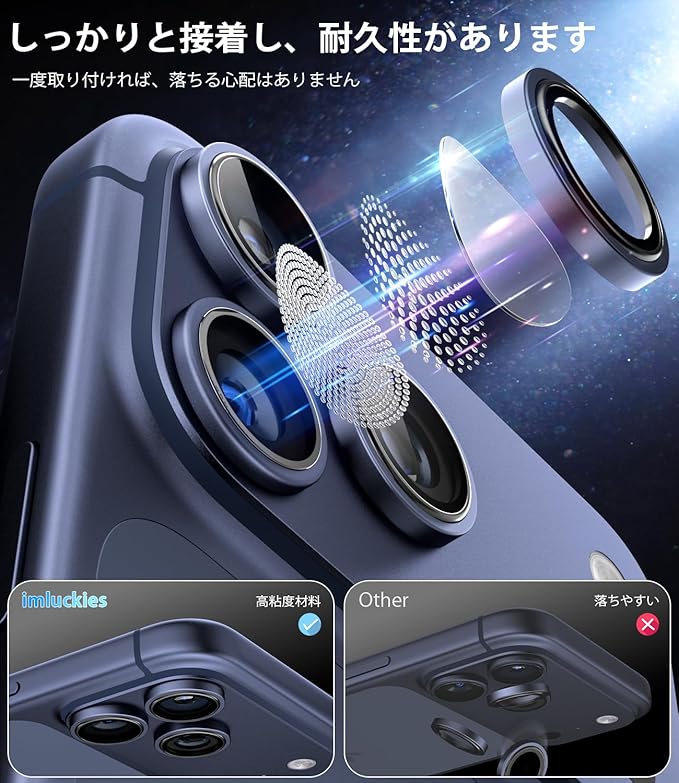 【対応機種】iPhone 17 Pro / 17 Pro Max専用カメラスクリーンプロテクター、ダークブルー