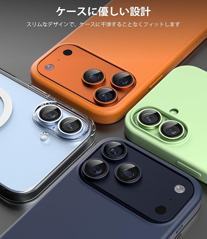 【すべてのケースに対応】レンズフィルムは、カメラ部分のみをカバーする独立した分割設計を採用しており、ほとんどのiPhone 17 Pro/17 Pro Maxケースに対応しています。安定感と快適な装着感で、お気に入りのケースと組み合わせても組み立てやすさを損なうことなく使用できます。粘着面がしっかりと密着し、気泡を防ぎ、全体的な外観を向上させます。