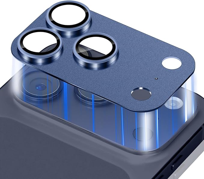 カメラフィルム iPhone 17 Pro (6.3インチ) 対応 レンズカバー、アルミ合金+9H硬度強化ガラス製 アイフォン17 Pro 用 レンズカバー 全面保護 高透過率 露出オーバー防止 耐衝撃 カメラ保護フィルム - ディープブルー | KAZESHOP