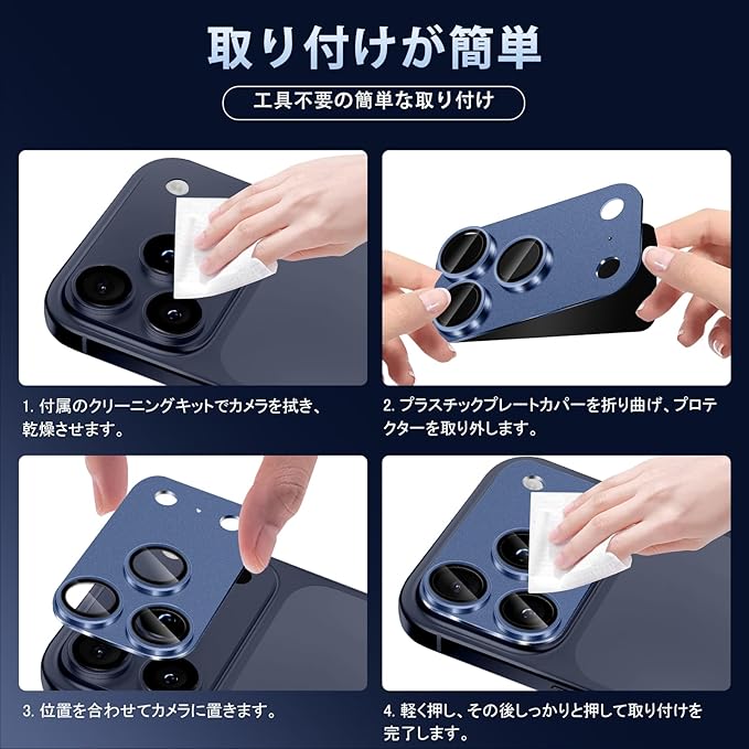 【対応機種】 このカメラフィルムは iPhone 17 Pro に専用設計、従来品のガラス製と違って、本製品はアルミニウム合金+9H硬度強化ガラス製、本体に融合していく、一体感と高級感が溢れています。擦り傷や衝撃からカメラレンズをしっかりと守られます。