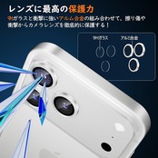 【保護力抜群・耐衝撃・飛散防止】いiPhone 17 Pro/17 Pro Maxカメラ保護カバーは、9H硬度の強化ガラスと高耐久アルミ合金を組み合わせ、優れた耐傷性・耐衝撃性を実現。日常の擦り傷から不意の衝撃まで、レンズをしっかり保護します。さらに、飛散防止加工を施しており、万が一割れても破片が飛び散らず安心です。
