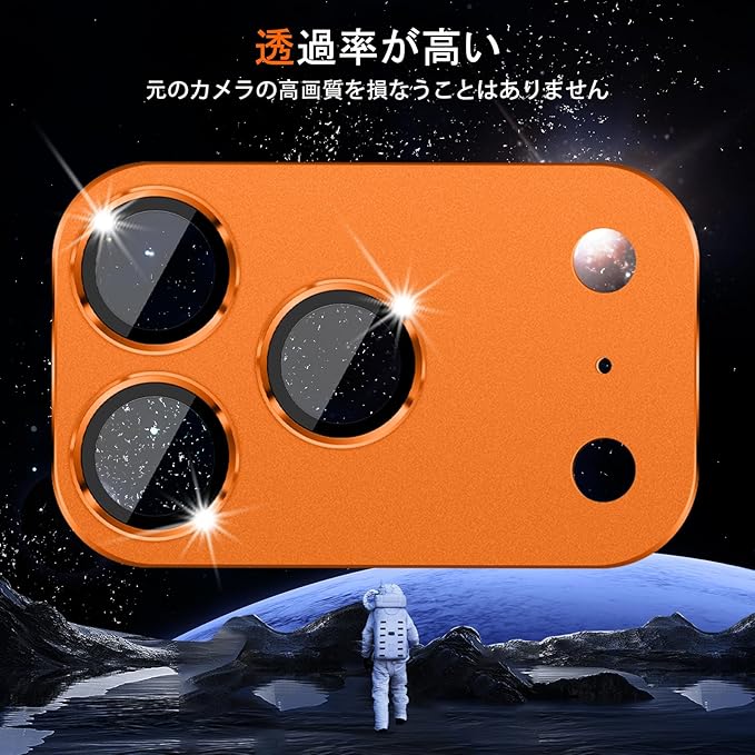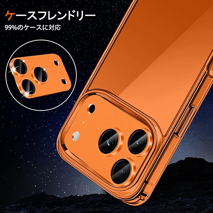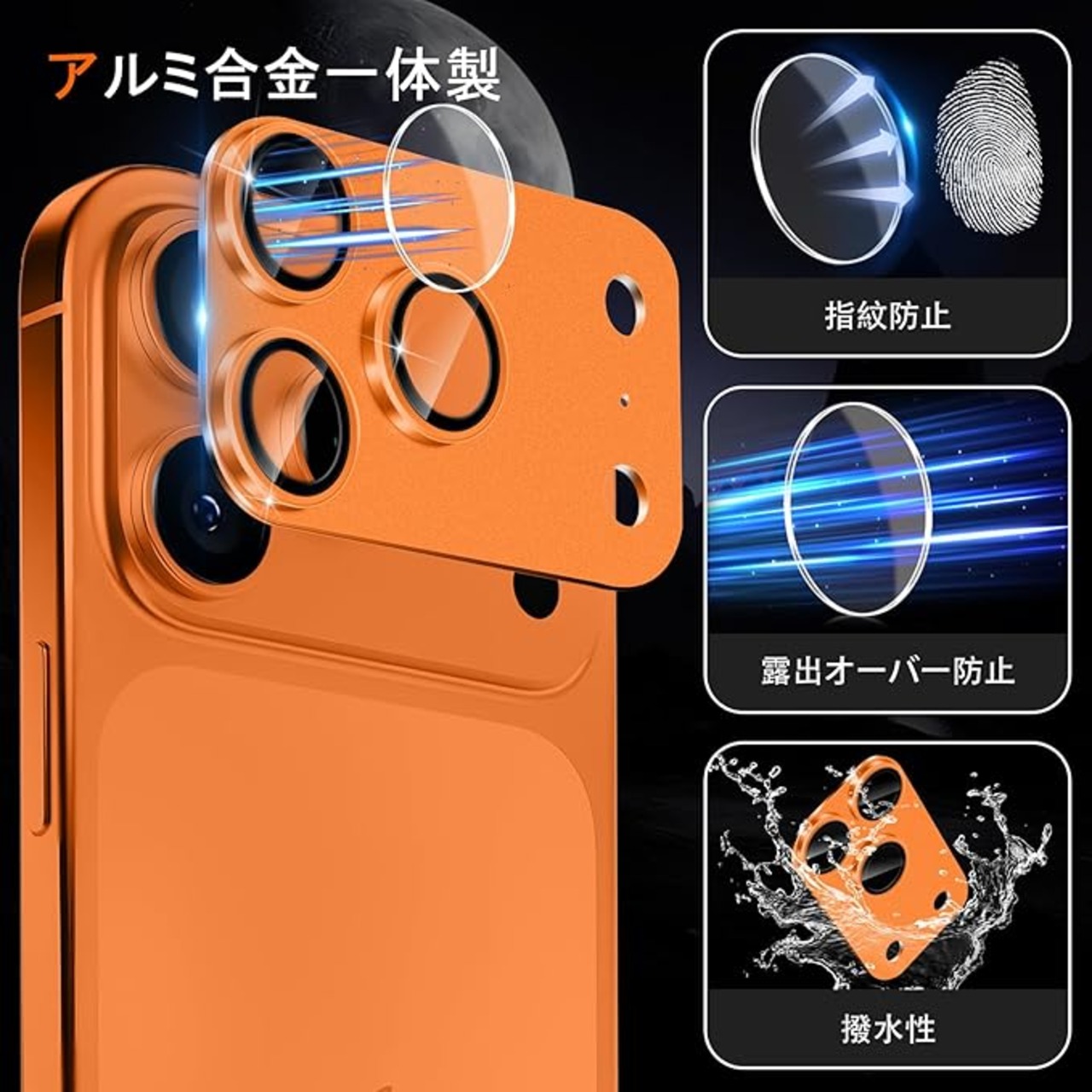 カメラフィルム iPhone 17 Pro 対応 カメラ レンズ 保護カバー アイフォン17pro 用 レンズ保護フィルム アルミ合金 耐スクラッチ 耐衝撃 カメラカバー (オレンジ) | KAZESHOP