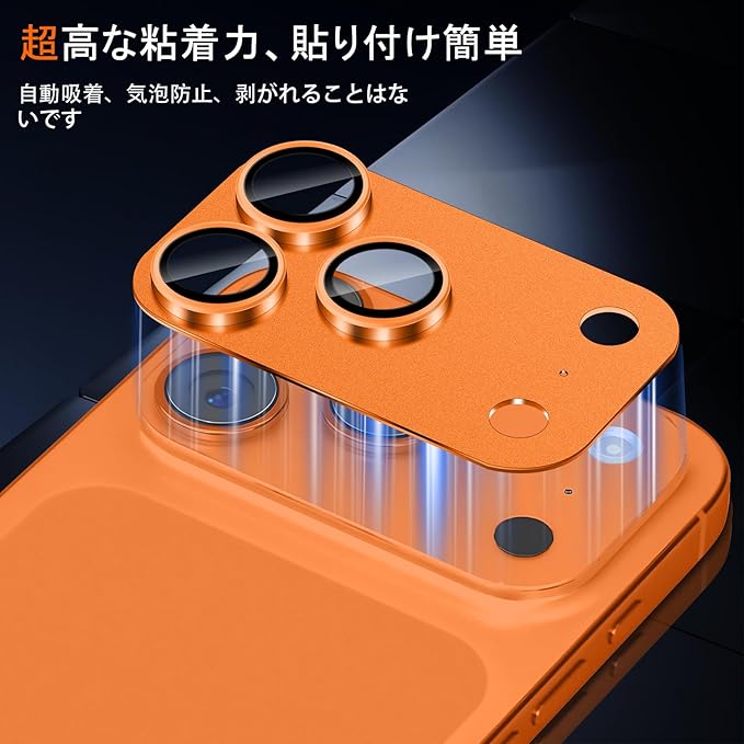 【対応機種・簡単貼り付け】iPhone 17 Pro 対応 カメラ保護フィルムです。ご注意: ご購入前、ご設備の型番をご確認いただきます。フィルムのシリコン自己吸着層により、位置を合わせて上から軽く置くだけで気泡が入ることなく簡単に装着できます。薄くて軽いデザインで、まるで携帯自体だけを持っているような感じです。