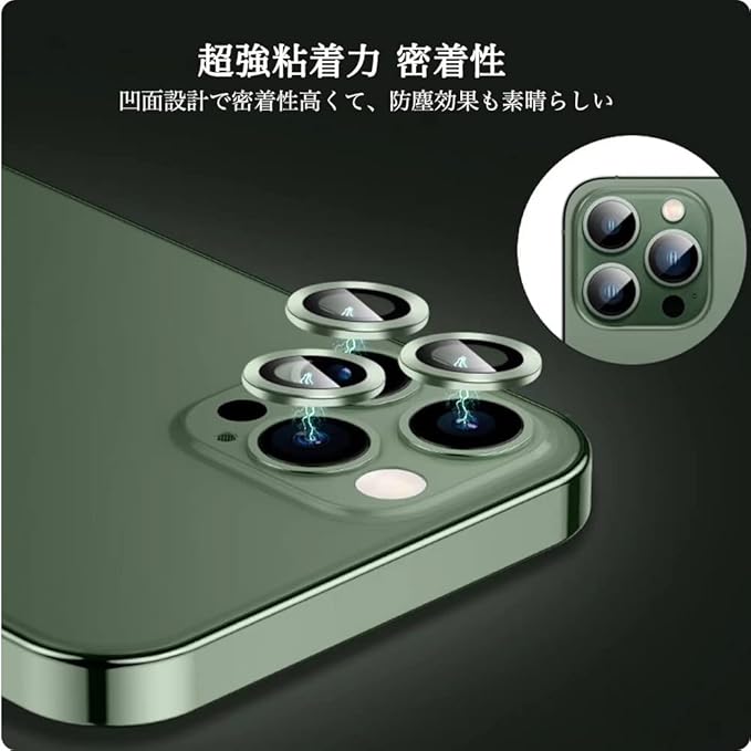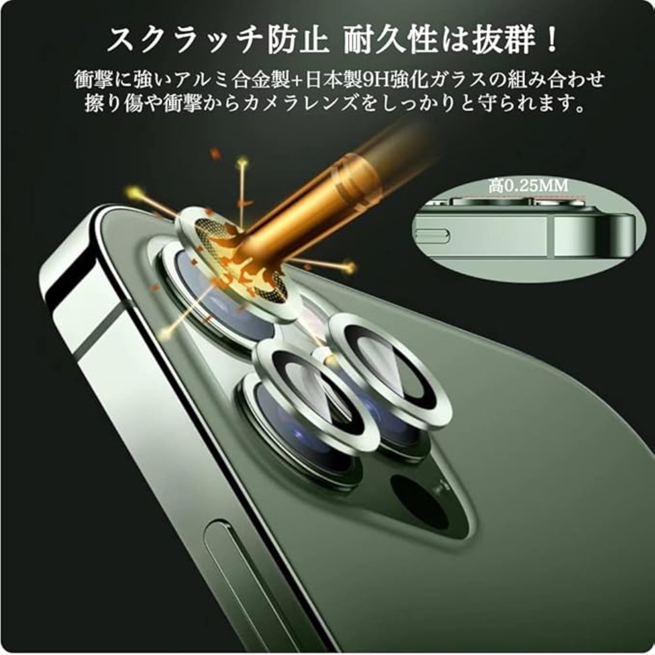 レンズ保護フィルム iPhone 13 Pro/iPhone 13 Pro Max用 カメラフィルム アルミ合金+9H硬度ガラス カメラカバー 0.25mm超薄 Apapeyaレンズ保護フィルム一体感 レンズ保護ケース 防爆裂 ・スクラッチ防止・露出オーバー防止・高透過率・ケースに干涉なし・衝撃吸収(グリーン) | KAZESHOP