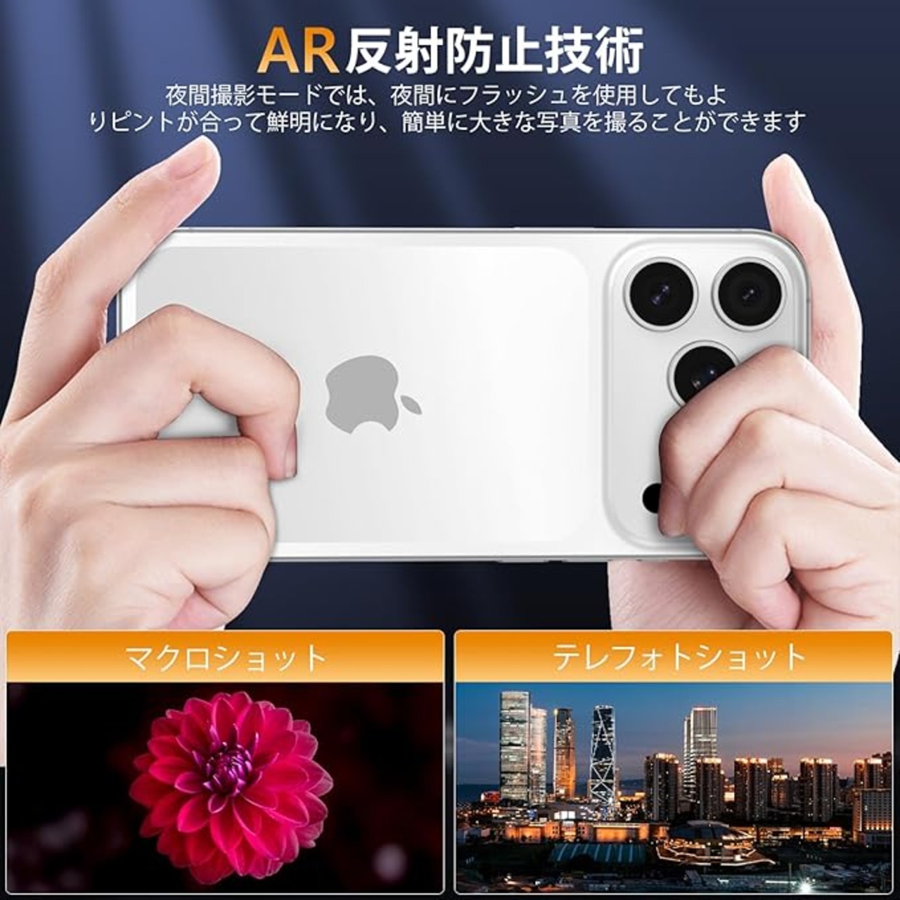 3. 【キレイに撮れる!AR 高透過率+白飛び防止】: 夜景やフラッシュ撮影で写真が白っぽくなること、ありませんか?この**いPhone 17 Pro用 カメラ保護フィルム**は、特別な黒縁デザインとARコーティング技術により、99%の光透過率を実現。フラッシュ使用時の乱反射を抑え、白っぽくなる「露出オーバー」現象を効果的に防止します。これにより、カメラの本来の性能を損なうことなく、鮮明で自然な発色の写真や動画撮影を保証します。