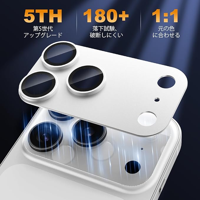 2. 【ピタッとフィット&ケースとも相性抜群】: この**一体型**カメラカバーは、三眼レンズだけでなく、四角い台座部分までアルミ合金でカバーしています。本体カラーと合わせたデザインで見た目もスッキリ。ほとんどのスマホケースと干渉しないので、ケース派の方にもピッタリです。まるで純正の**いPhone 17 Pro 用レンズカバー**のような仕上がりです。