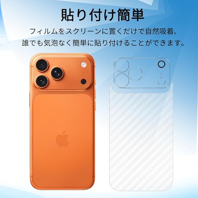 For iPhone 17 pro max 背面フィルム 【2枚】 + カメラフィルム 【2枚】 炭素繊維フィルム カーボンスキンシール 気泡ゼロ 指紋防止 バックフィルム 極薄 AnnTec | KAZESHOP