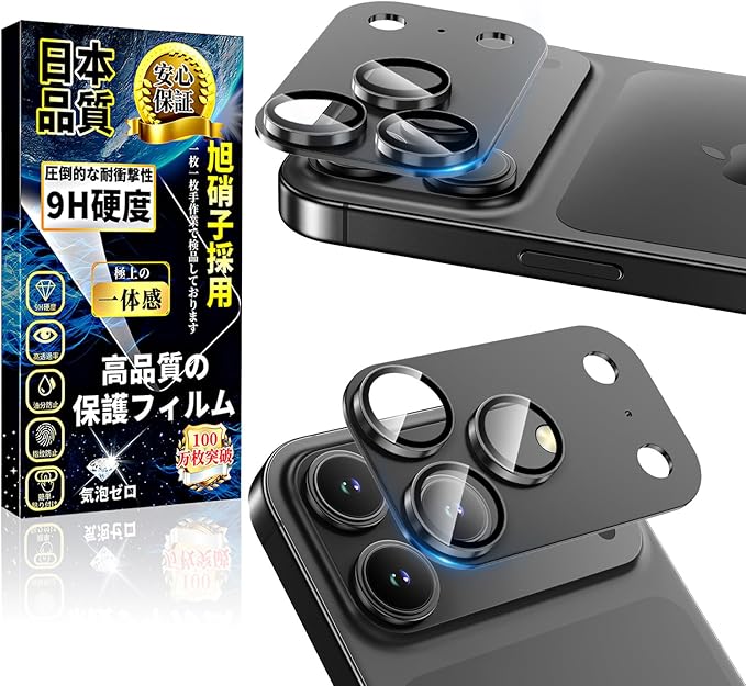 【アルミ合金一体感!対応機種】iPhone 17 Pro 専用 カメラフィルム 露出オーバー防止【2枚入り】。衝撃に強いアルミ合金製+日本製9H強化ガラスの組み合わせ全面保護タイプで最高な保護力を提供しています。擦り傷や衝撃からカメラレンズをしっかりと守られます。
