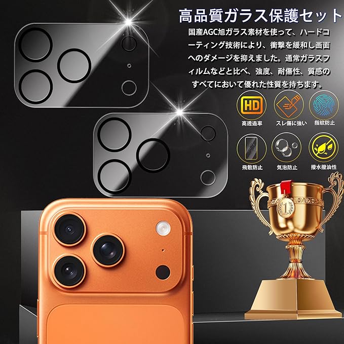 【対応機種-2枚入り】iPhone 17 Pro 用の カメラフィルム(2枚入り)。万が一製品にご満足いただけない場合は、弊社よりに全額返 金 交換対策がございますので、ご遠慮なくご連絡ください。ご安心してお買い求め下さいませ。
