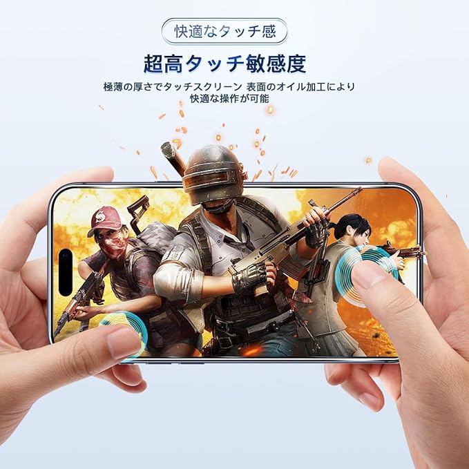 ★【業界最高硬度・耐衝撃性!】 日本製旭硝子素材を採用し、硬度 9H の超強化ガラスにハードコーティング技術を施しています。1 メートルの高さから 10kg の荷重を 30 回繰り返し落下させる過酷な試験に合格した実績を持ち、日常生活で遭遇するキーやカッター、コインなどの鋭い物による傷からも端末をしっかり保護します。 さらに、飛散防止加工により、万一ガラスが破損した場合でも破片が飛び散ることを防ぎ、破片はほぼ固定された状態を維持するため、使用者の安全を確実にサポートします。