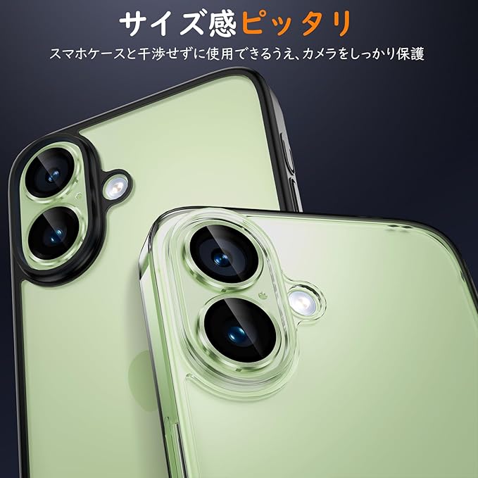 【一体感・スマホケースと干渉なし】本体に沿って精密に設計され、カメラレンズにぴったりとフィットします。引っかかり感がなく、ほとんどのケースと干渉しません。フィルムを貼った後でもスマホ本来の上質な美しさと高級感を損なわず、いつものスマホに上品さをプラスします。