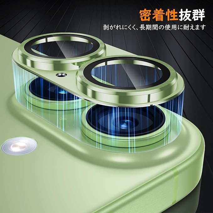 カメラフイルム iPhone 17 用 カメラ保護 全面保護 9H強化ガラス アルミ合金 アイフォン17 レンズカバー 耐衝撃 フラッシュ干渉なし 黒縁取り 超高透過率 いphone17 カメラカバー プロテクター 傷に強い グリーン | KAZESHOP