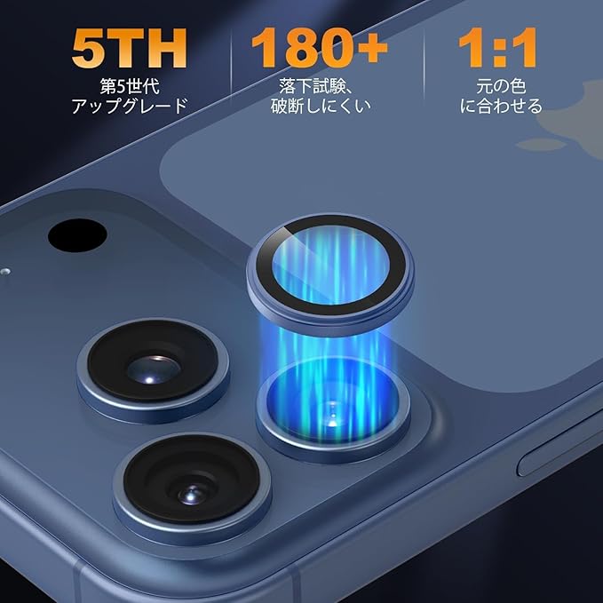 sx iPhone 17 Pro 用の カメラ保護フィルム 17 Pro max 用の カメラ保護カバーアイフォン17プロ/17プロマックス 用の カメラフィルム 耐衝撃 ARコーティング 超高透過率 レンズカバー 黒縁取り 露出オーバー防止 曇り防止 キズ防止 (LensGuard-ブルー) | KAZESHOP