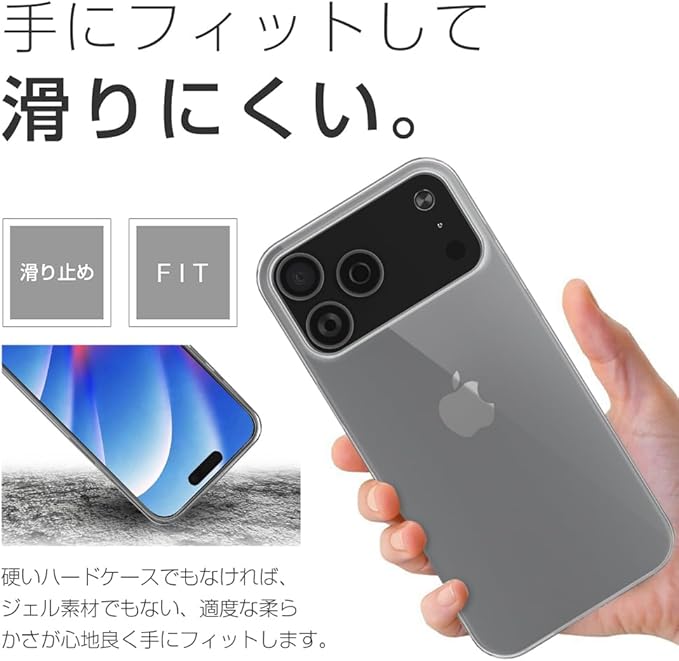 薄くて 軽い。「 あっ! と驚くほど軽くて薄い。 」手帳型ケース、衝撃吸収ケース、防水ケース に隠れてしまっている本来のスマートフォン美しさを、今一度、体験してみませんか? 硬すぎず、柔らかすぎない “心地よいフィット感” 、 日本水準の高品質TPU素材を採用。 前モデルに比べ、熱可塑性ポリウレタンを約10%アップ。 更なる、 手への フィット感 、 滑り防止 、 指紋防止 を実現しました。 硬い ハードケース でもなければ、柔らかすぎる シリコン素材 でもない、 適度な柔らかさが心地良く手にフィットします。 大切なスマートフォンが手から滑り落ちる心配はありません。
