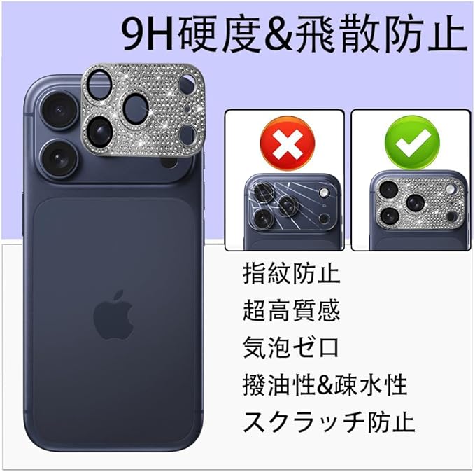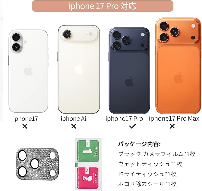 For iPhone 17 Pro カメラフィルム カメラカバー レンズカバー カメラ保護 ラインストーン【アルミ合金縁取り+強化ガラス】 レンズ全体保護 黒縁取り 露出オーバー防止 キラキラ レンズ保護フィルム 携帯電話の装飾 貼り付け簡単 貼り付け簡単 気泡防止 飛散防止 高透過率 【ブラック】 iPhone 17 Pro 用 レンズフィルム | KAZESHOP