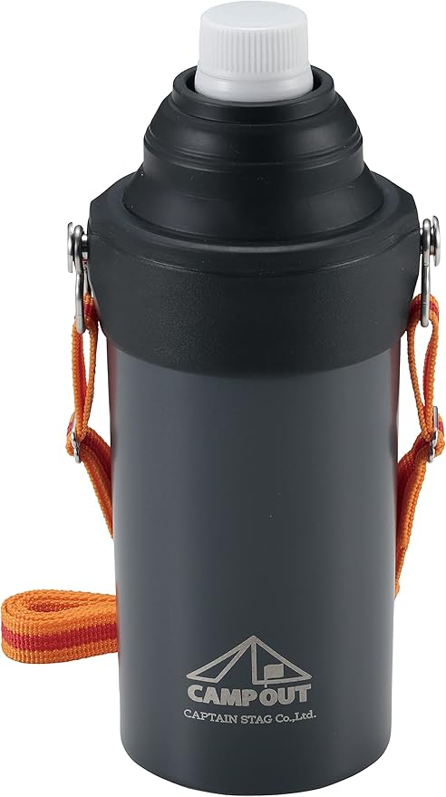 キャプテンスタッグ(CAPTAIN STAG) ペットボトルホルダー ペットボトルクーラー HD ステンレスペットボトルホルダー 真空断熱 保温 保冷 500ml 600ml 兼用 ショルダーベルト付 ダークグレー キャンプアウト UE-3575 | KAZESHOP