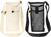 カラー:黒ベージュ;素材:メッシュクロス;全体サイズ:220mm x 130mm / 8.6" x 5.1"(高さ 幅);推奨ボトルサイズ:直径82mm以下;パッキングリスト:ウォーターボトルスリングバッグ2個