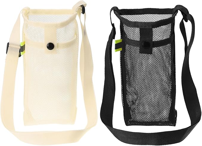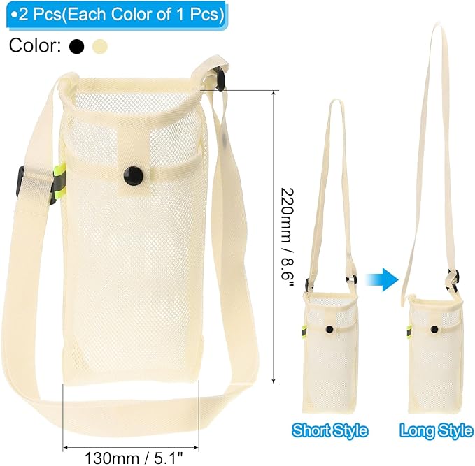 PATIKIL 22mmx13 mm ウォーターボトルバッグ 2個セット メッシュポータブルボトルホルダーキャリア スポーツ ハイキング キャンプ用 調節可能なショルダーストラップ 黒ベージュ | KAZESHOP