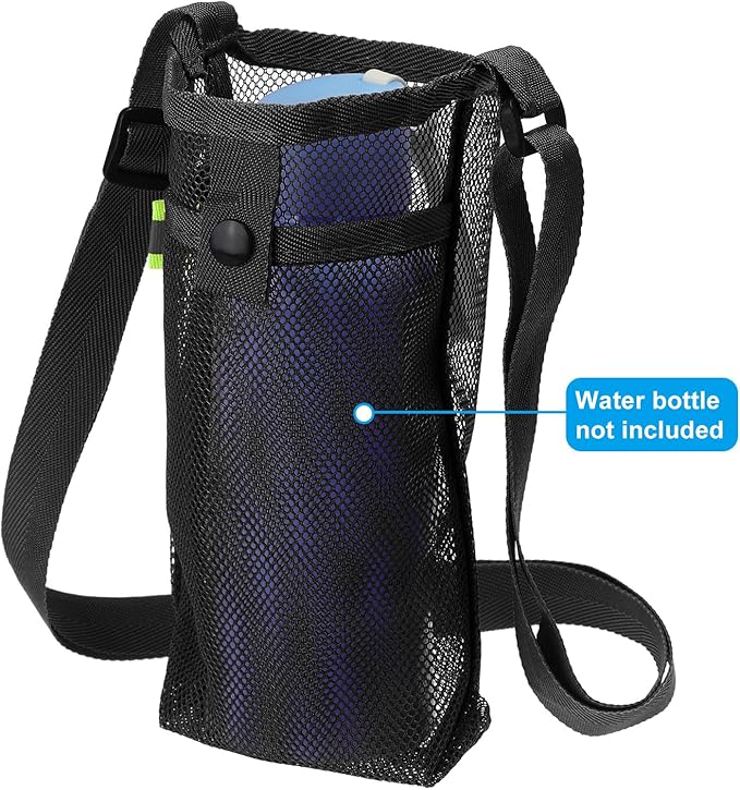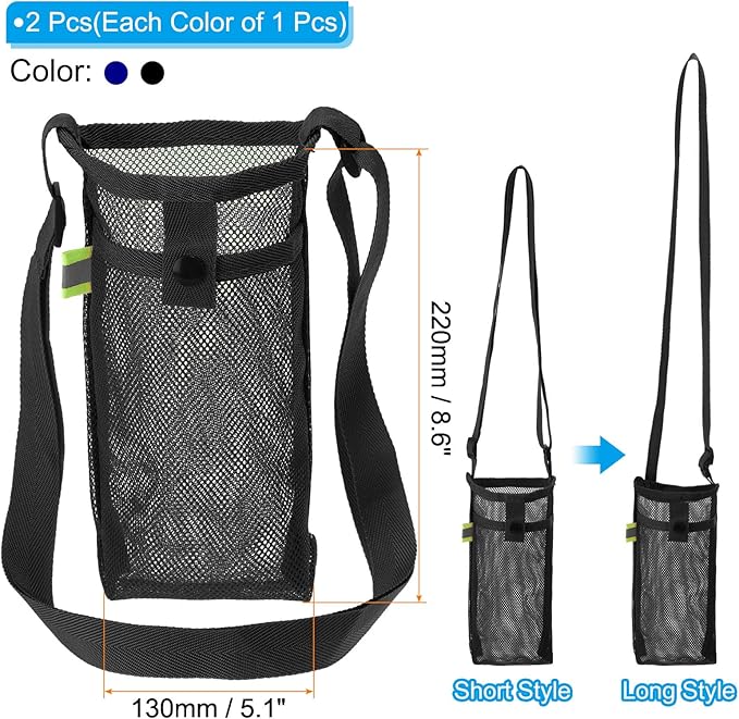 PATIKIL 22mmx13 mm ウォーターボトルバッグ 2個セット メッシュポータブルボトルホルダーキャリア スポーツ ハイキング キャンプに適した調節可能なショルダーストラップ 黒ダーク緑 | KAZESHOP