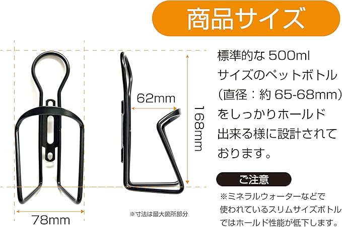 適応サイズ:65-68mmのペットボトル(標準サイズ) ※ミネラルウォーターなどで使われているスリムサイズボトルではホールド性能が低下します。