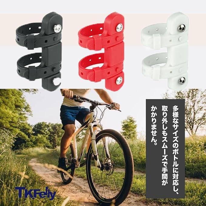 【様々な自転車に】ロードバイクだけでなく、クロスバイクやマウンテンバイクなど、さまざまな種類の自転車でご利用いただけます。本来ボトルが取り付けられていないタイプの自転車にも取り付けることが可能です。取り付けが難しい箇所には、付属の結束バンドを使って補助してください。快適なサイクリングを楽しむために、取り付け位置を調整して最適なバランスを見つけることが重要です。また、安全に使用するために、走行前には必ず取り付けの状態を確認し、しっかりと固定されているか確認してください。