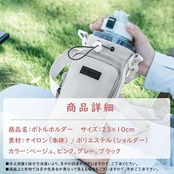 このおしゃれで便利なボトルホルダーは、防撥水ナイロン素材で汚れや雨からアイテムを守り、折りたたみ式ファスナーポーチで小物収納も可能。直径9cmの大容量設計で500ml~1000mlのボトルに対応し、調節可能なストラップで肩掛け・手持ちの2WAY使いができる、旅行やアウトドアに最適な軽量デザインです。