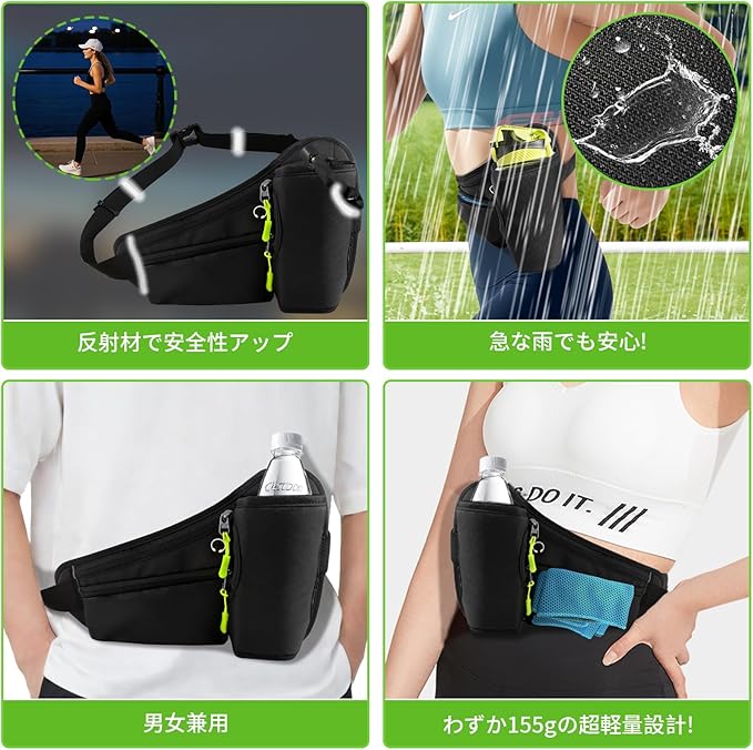 ランニングポーチ 2本クールタオル付き ランニングバッグ ウエストポーチ ウエストバッグ スマホ ペットボトル 揺れない ウエストポーチ 軽量 防水 薄型 おしゃれ メンズ レディース スポーツ用品 | KAZESHOP