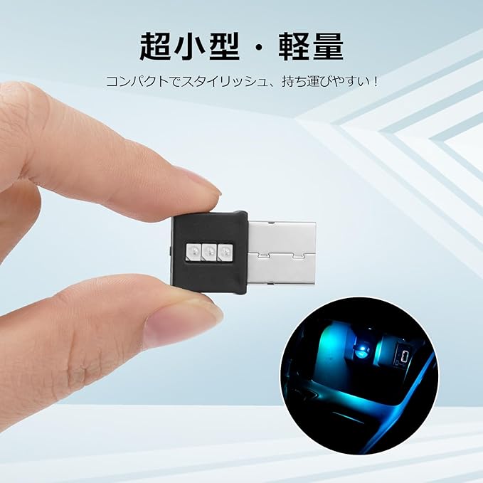 1.【Type-A usbライト】車内にあるType-A USB ポートに接続するだけで、暗くなると自動的に点灯するアンビエントライトです。タイプAポートを持つすべての車両や設備に適用できる広範な用途を備えています。「セット内容」:USB LEDライト Type-A 1p。