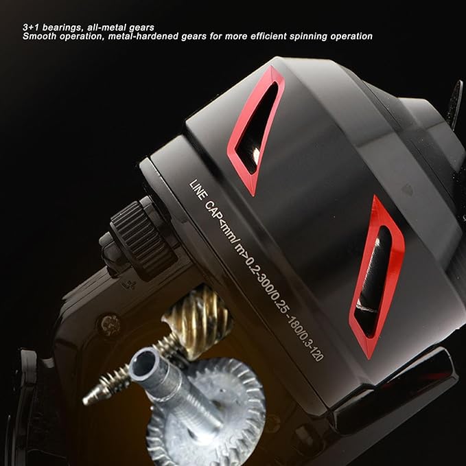 リバーシブルハンドル:釣り用リールのハンドルは、左手または右手の取り出しから素早く簡単に変更できます。 3+1 ベアリング、すべての金属ギアがスムーズに動作し、金属ギアの伝達がより簡単になります。