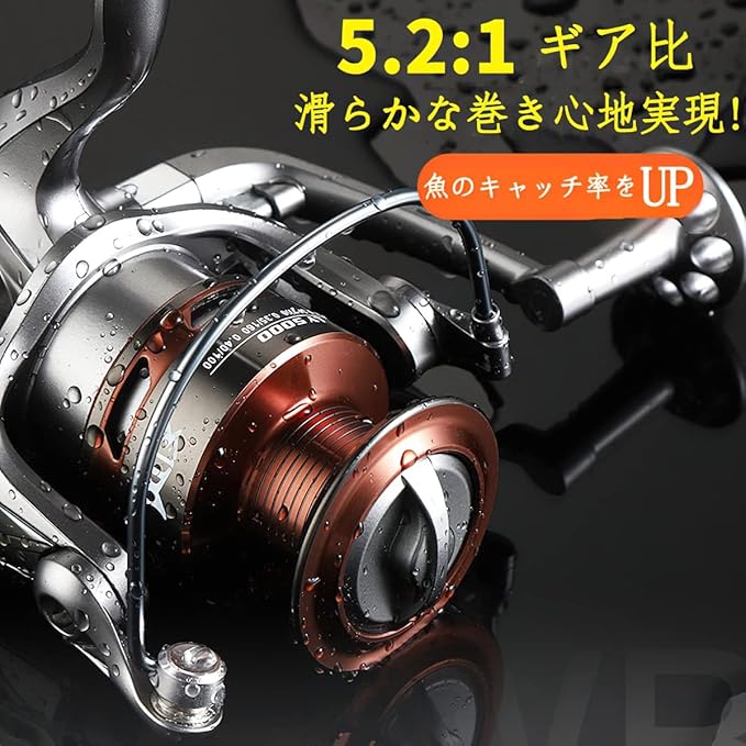 【汎用釣りリール】防水で設計され、陸釣りに限らず、船釣り、海釣りにも適する淡水にも海水にも適用する。これからエギングを始める方にお勧めする最強コスパのスピニングリールです!