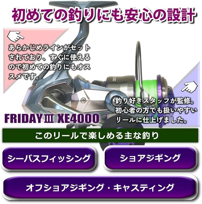 モデル名 PEライン付スピニングリール フライデー3 XE4000 1.5号200m付