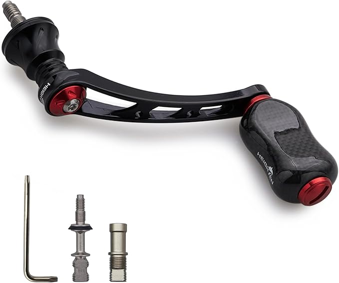 HEIGHTEN 56mm リール ハンドル 21mm カーボン ノブ 搭載 シマノ ダイワ 通用 スピニングリール用 Gourd Series (ブラック&ワインレッド) (830) | KAZESHOP