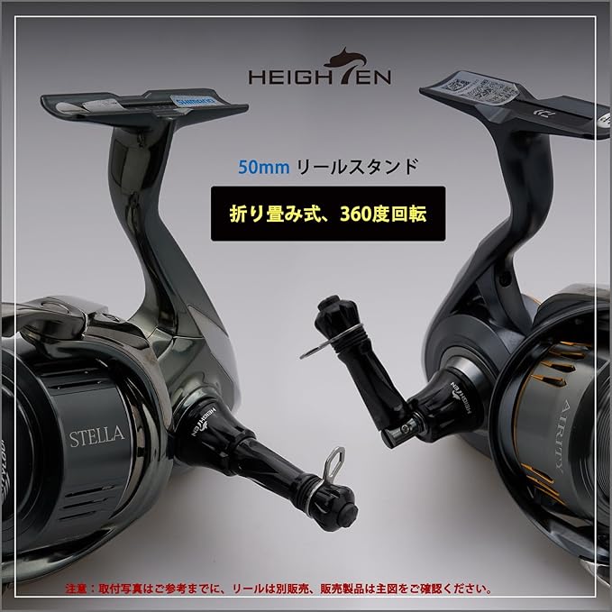 【特徴】1)便利な折り畳み式(抜き出して90度に曲げるとロックされ折り畳み完了、折り畳み状態で360度回転可能、スプリング構造で軽く押すと立つ状態に戻る)、2)先端部シリカゲル製でリールを置き傷から守る、3)シマノ&ダイワ共用、4)夜光キャップ付属、5)フックキーパー、フックホルダー、6)ラインストッパー、7)水の侵入をブロック。 【製品仕様】本体長さ: 50mm、折り畳み状態長さ、25mm。自重: 9.3g、材質:航空アルミ、耐腐食性能を持つ、海釣りもご安心。 【対応機種】シマノ(SHIMANO)/ダイワ(DAIWA)のネジ込み式リール通用 (2種類のソケット付属)。 【付属品】1個のシマノ用ソケット(元から製品に装着しておる)、1個のダイワソケット、1個の夜光キャップ。 【便利な折り畳み式】スプリング構造、抜き出して90度に曲げると折り畳み完了、折り畳み状態で360度回転可能、スプリング構造で軽く押すと立つ状態に戻る。 【リールを置き傷から守る】キャップの先端部に摩擦に強いシリカゲル製の部品があり、デリケートなラインやリールを置き傷から守るリールスタンド。 【夜光キャップ】繰り返し使用できる夜光材料で作り、光でしばらく照射した後、4時間以上連続発光することができる。 【フックキーパー】先端部がフックキーパーとなりルアーのフックを引っ掛けることが出来るようになる。 【ラインストッパー】中央部分にはOリングを使用したラインストッパーも装備し、2本のOリングにラインを挟むことにより、ラインストッパーとして使用することができます。餌木などフックキーパーが使いづらいものでも保持できるようになっている。 【水の侵入をブロック】アルミキャップおよびリールを装着する部分には、ゴム製Oリングで水の侵入をブロック。モノづくりの本質は細部。見た目だけではなく、細部にも一切手を抜かないこだわりが詰め込まれている。