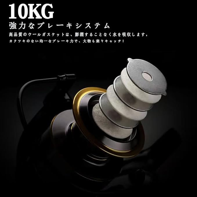 高ドラグ性能: 多層ワッシャーに加え、吸水しても膨らみにくい上質ウールガスケットを精密に組み合わせることで、リール回転時の慣性によるブレやドラグ力のムラを最大限軽減。10kg のパワフルなドラグ力を安定して提供でき、リール本体や釣り糸への負荷を効果的に緩和します。大物魚が掛かった際にも、急激な力が加わっても牽引力が安定し、魚の逃げを確実にコントロールできるだけでなく、ドラグ機構自体の耐久力も大幅に向上させています。