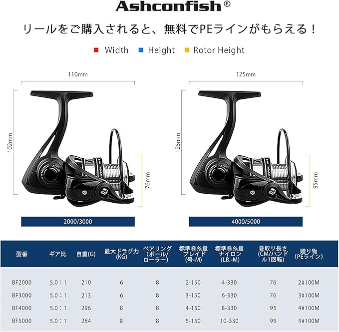 Ashconfish スピニングリール グラファイトボディ 7+1BB ステンレス アッシュコンフィッシュ ギア比5.0:1 海水 淡水 両用 超軽量 (AF/CF/KF/BF) | KAZESHOP