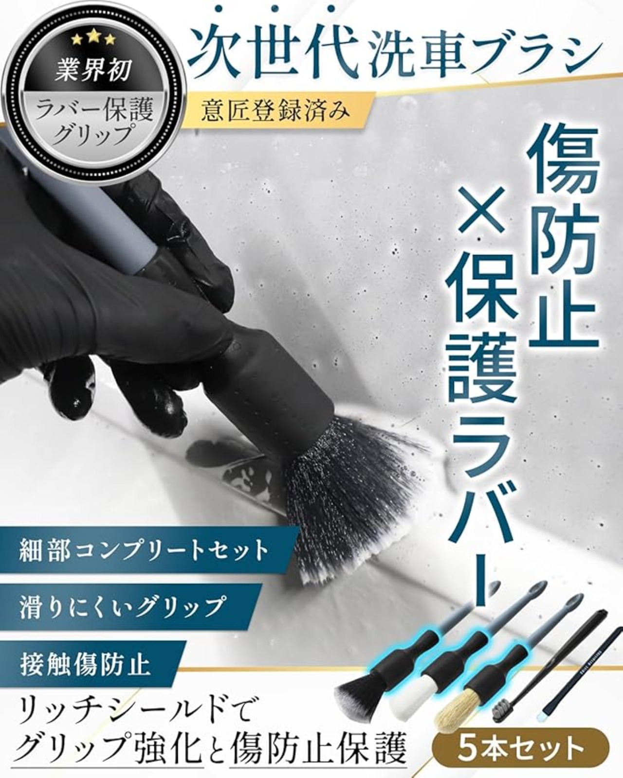 リッチシールドの洗車ブラシ5本セットは、プロ仕様のディテールブラシも含む充実の洗車グッズ。ボディやホイールはもちろん、車内まで幅広く対応できる洗車用品として、カーライフを快適にする便利グッズです。
