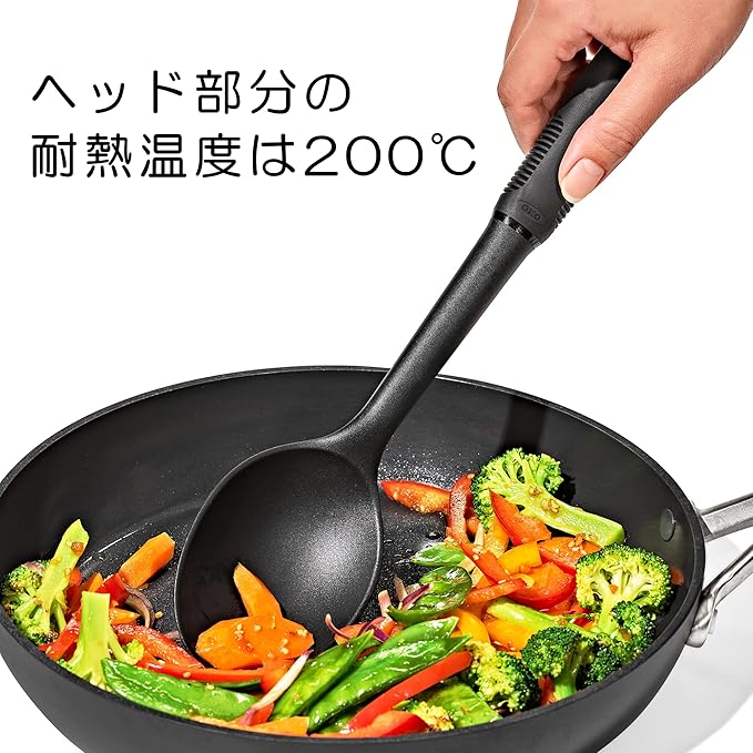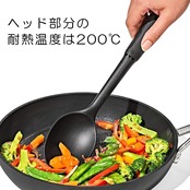 柔らかいハンドルと大きめのヘッドが特長のナイロンスプーン。耐熱性に優れ、ノンスティック加工を始めとしたあらゆる調理器具に使用できます。