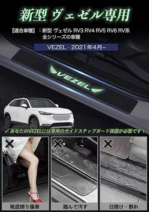 SUVVNE(スヴニ) ヴェゼル スカッフプレート 夜光 サイドステップガード VEZEL (2021年4月~現行)レザー素材 サイドステップ 防水 防汚れ 防傷 装着簡単 日本語取扱説明書付き 4点セット | KAZESHOP